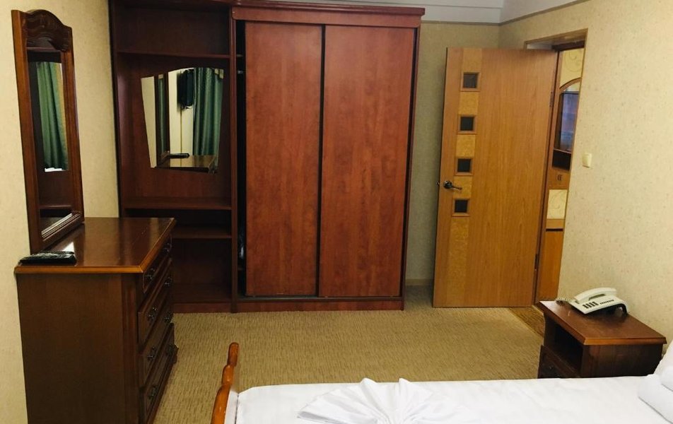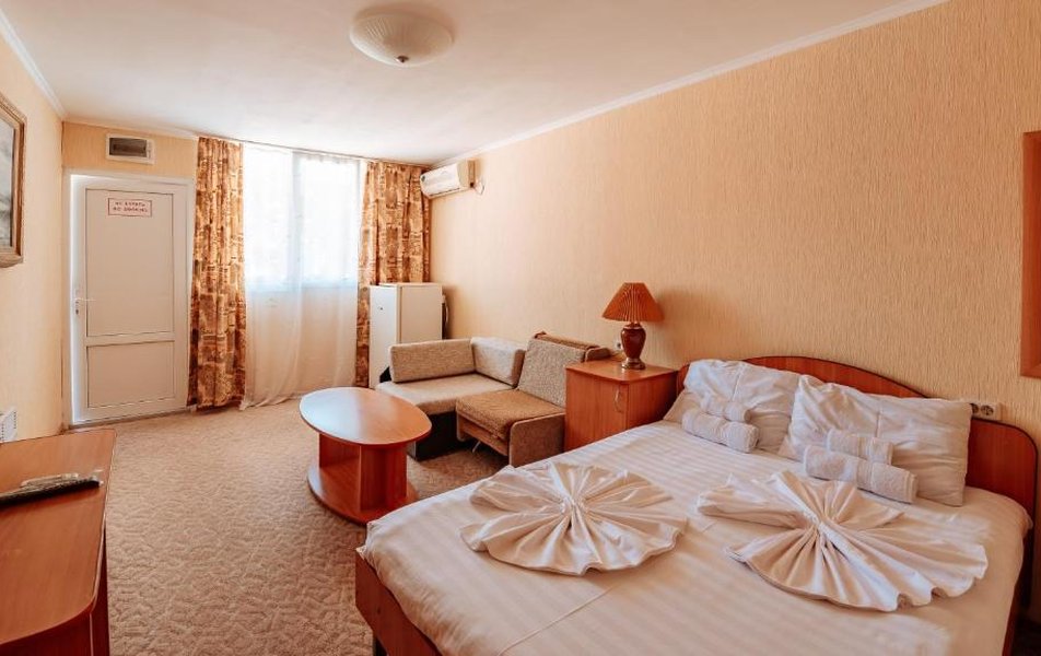 В номере: телевизор, кондиционер, холодильник, телефон, набор посуды, санузел, душ, сейф, кресло-кровать.